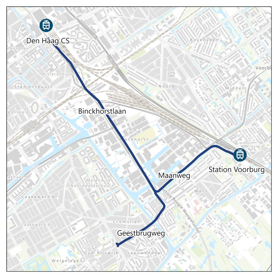 De tramverbinding loopt straks vanaf station Den Haag Centraal via de Binckhorstlaan en Maanweg naar station Voorburg. Vanaf de Binckhorstlaan via de Prinses Mariannelaan en de Geestbrugweg gaat de tram richting Rijswijk en Delft.